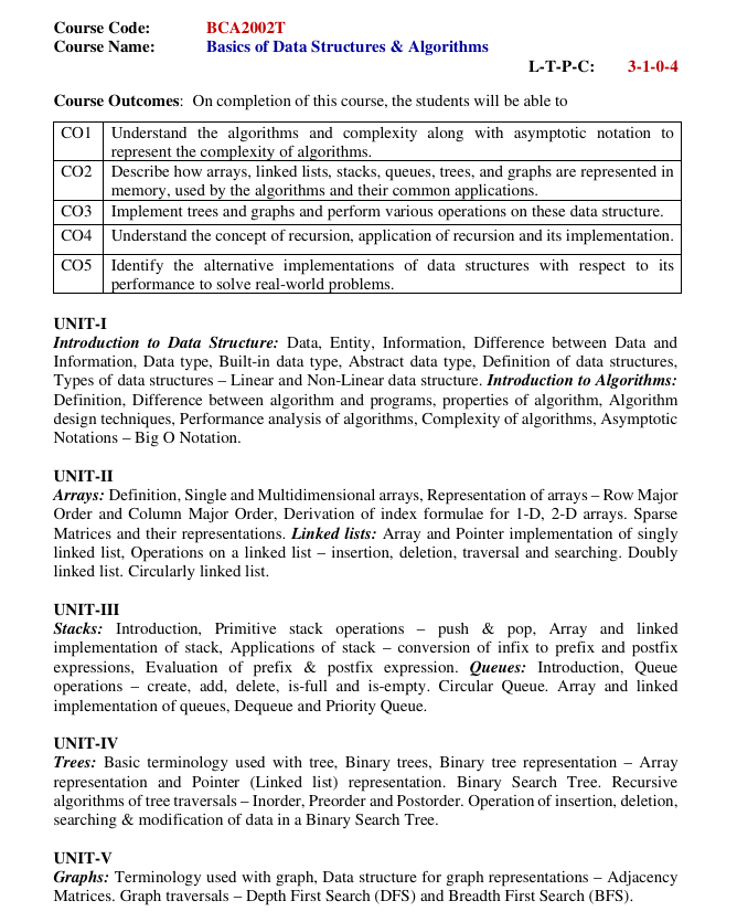 BCA-2002T Basics of Data Structure & Algoirithm (Section-D)